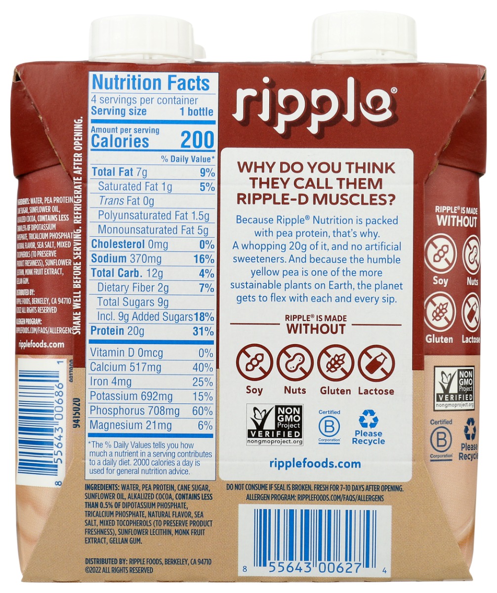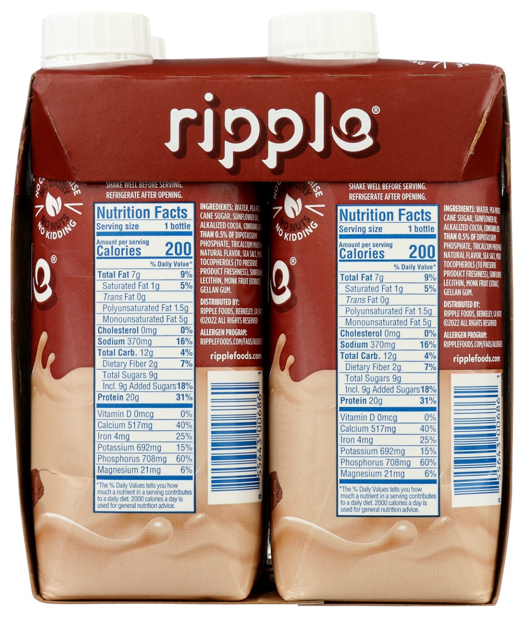 RIPPLE: Plant Protein RTD 4Pk Chocolate, 44 fo RIPPLE: Plant Protein RTD 4Pk Chocolate, 44 fo RIPPLE: Plant Protein RTD 4Pk Chocolate, 44 fo RIPPLE: Plant Protein RTD 4Pk Chocolate, 44 fo