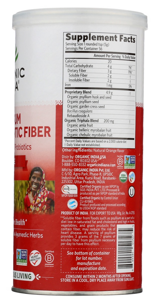 Home > ORGANIC INDIA: Fiber Psyllm Probio Ornge, 10 OZ