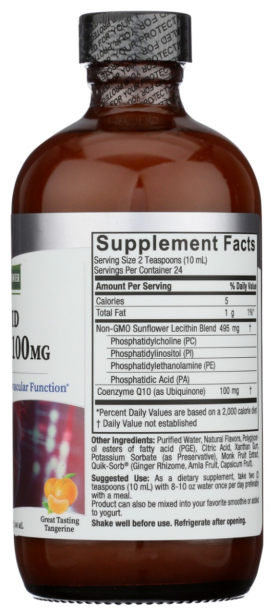 Nature’s Answer CO-Q10 Liquid tastes great and goes down smooth, with a delicious natural tangerine flavor. It provides an easy way to get your supplemental CO-Q10* to supporthealthy heart function*, while pleasing your palate! Nature’s Answer exclusive formula features a Non GMO Project Verified Sunflower Lecithin blend which supplies Phosphatidylcholine (PC),Phosphatidylinositol (PI) and Phosphatidylethanolamine (PE), to support cellular functions*. It is also enhanced with Quik-Sorb®, an exclusive proprietary blend of Ginger Rhizome, Amla Fruit and Capsicum to support absorption*.