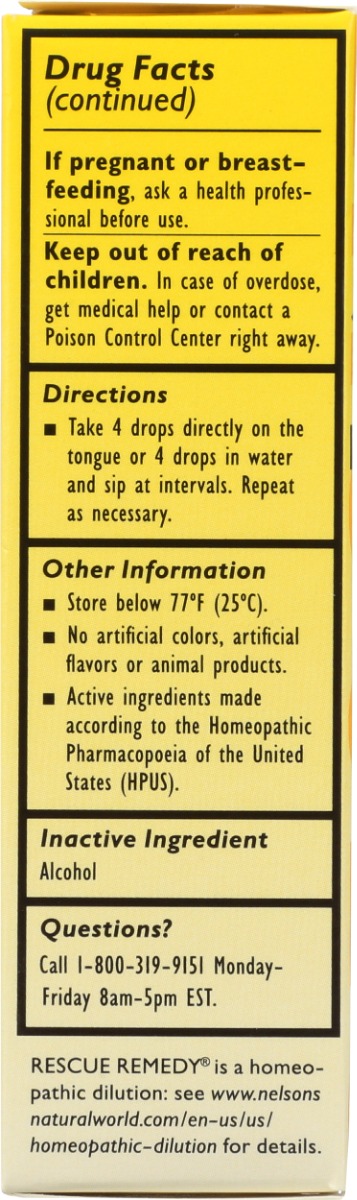 In the original dropper bottle, the RESCUE Remedy formula is the same today as it was when developed more than 80 years ago. Keep at home in your first-aid cabinet or in your desk at work for easy, discreet stress relief. Four drops are all you need to feel the calming effects of RESCUE® Remedy.