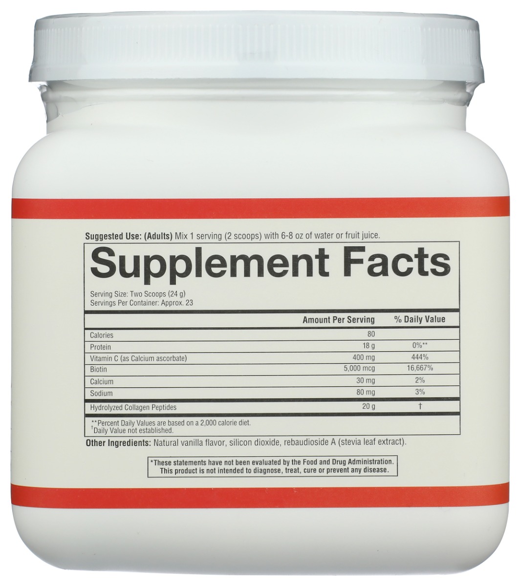 Youtheory Collagen Powder is specially designed to help counteract the natural aging process. Supplying 6,000 mg of hydrolyzed collagen per serving, this convenient and easy-to-use product can help replenish the body's supply of vital collagen, while delivering powerful health benefits. This formula is enhanced with Vitamin C to promote internal collagen production and Biotin to support factors important to health and beauty.