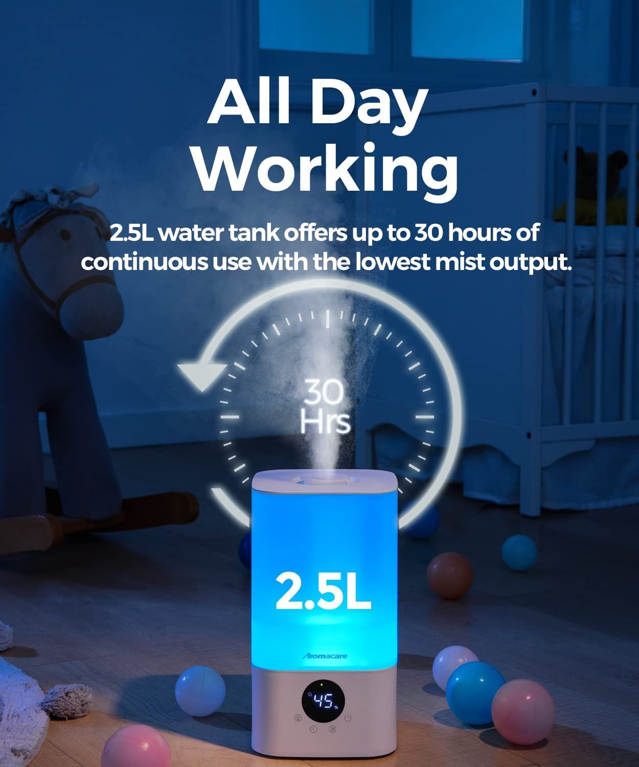 Home > Aromacare Humidifiers for Bedroom, 2.5L Cool Mist Air Humidifier with Essential Oil Diffuser, Small Ultrasonic Top Fill Humidifier for Baby Kids Plant