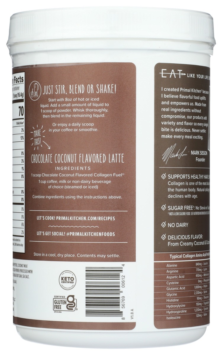 PRIMAL KITCHEN: Collagen Fuel Chocolate Coconut, 13.9 oz PRIMAL KITCHEN: Collagen Fuel Chocolate Coconut, 13.9 oz PRIMAL KITCHEN: Collagen Fuel Chocolate Coconut, 13.9 oz PRIMAL KITCHEN: Collagen Fuel Chocolate Coconut, 13.9 oz
