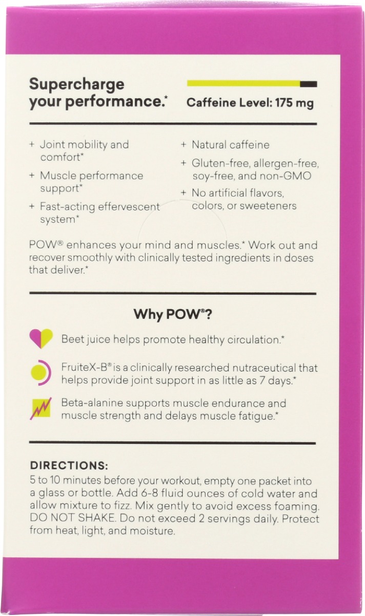 POW® is a natural pre workout that enhances your mind and muscles to help you maximize your workouts. Work out hard and recover smoothly with clinically tested ingredients in doses that deliver.*