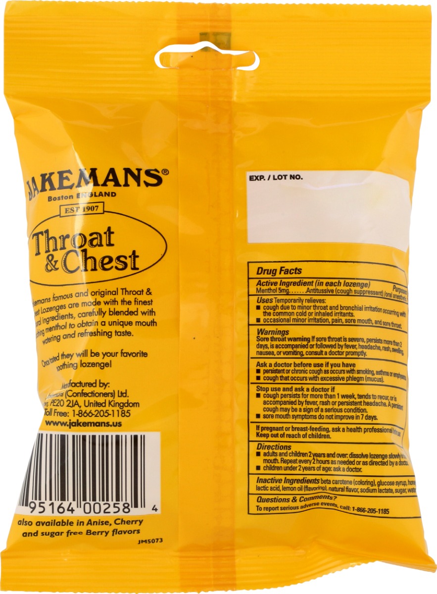 JAKEMANS: Throat and Chest Honey and Lemon Bag Of Lozenges, 30 pc JAKEMANS: Throat and Chest Honey and Lemon Bag Of Lozenges, 30 pc JAKEMANS: Throat and Chest Honey and Lemon Bag Of Lozenges, 30 pc JAKEMANS: Throat and Chest Honey and Lemon Bag Of Lozenges, 30 pc