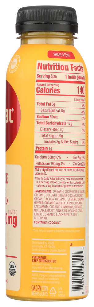 REBBL INC: Elixir Turmeric Golden Milk Organic, 12 fl oz REBBL INC: Elixir Turmeric Golden Milk Organic, 12 fl oz REBBL INC: Elixir Turmeric Golden Milk Organic, 12 fl oz REBBL INC: Elixir Turmeric Golden Milk Organic, 12 fl oz