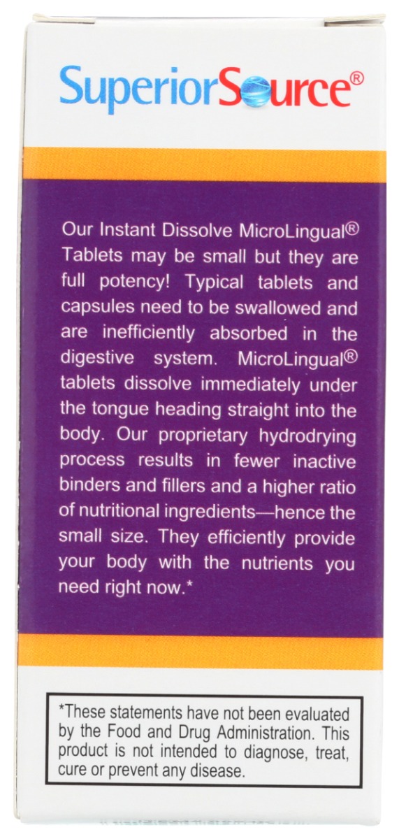 This Instant Dissolve MicroLingual™ Tablets go to work fast, under the tongue. Folic Acid promotes the production and maintenance of new cells and supports nervous system health, energy metabolism, and healthy heart function. B vitamins have been found to promote mental clarity and focus. Vitamin B6 is a water soluble vitamin that supports protein metabolism, red blood cell metabolism and the health of the nervous and immune systems.*     *Disclaimer: These statements have not been evaluated by the Food and Drug Administration. These products are not intended to diagnose, treat, cure, or prevent any disease.