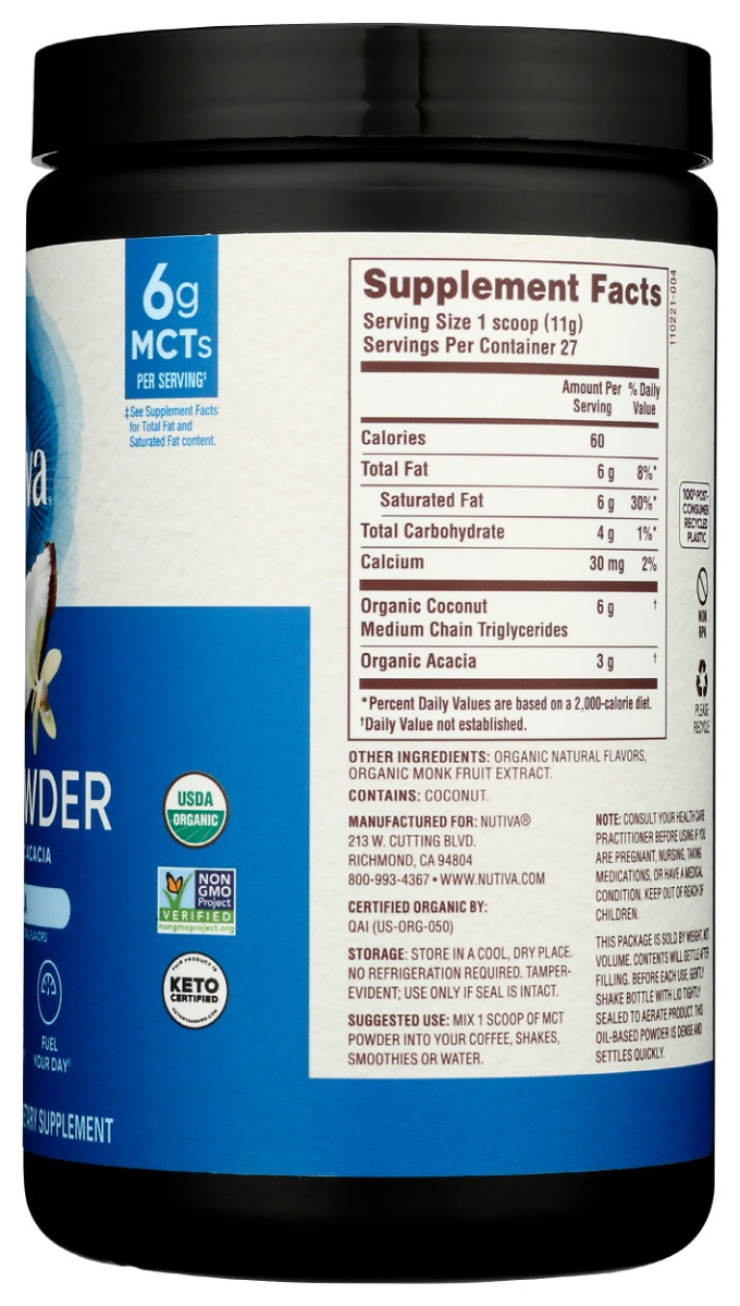 NUTIVA: Powder MCT Vanilla, 10.6 oz NUTIVA: Powder MCT Vanilla, 10.6 oz NUTIVA: Powder MCT Vanilla, 10.6 oz NUTIVA: Powder MCT Vanilla, 10.6 oz