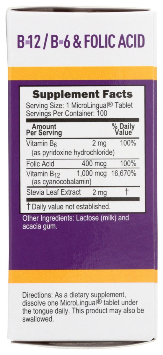 NO SHOT B12 (as cyanocobalamin)/B-6/Folic Acid MicroLingual® Tablets go to work fast, under the tongue. Other forms of B-12 supplementation can result in a loss of as much as 50% of B12 potency in the high acid environment of the stomach. This product's powerful combination of B12, B-6 and Folic Acid works synergistically to support healthy heart function and provide essential nutrients for the cardiovascular system.*