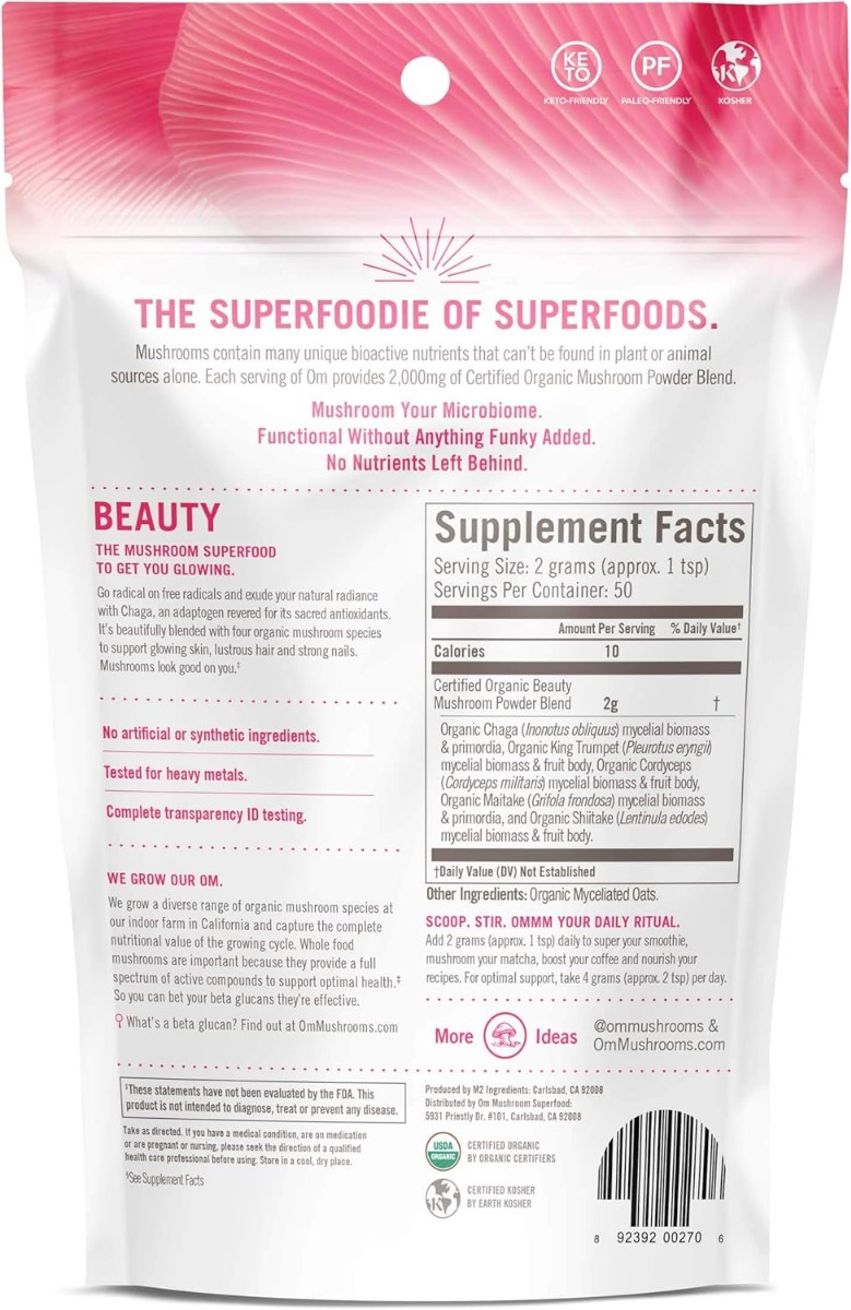 OM ORGANIC MUSHROOM NUTRITION: Beauty Mushroom Powder, 100 gm OM ORGANIC MUSHROOM NUTRITION: Beauty Mushroom Powder, 100 gm