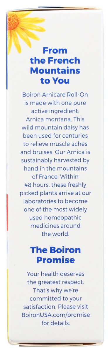 Boiron Arnicare Roll-on gel relieves muscle pain, stiffness, swelling from injuries, and bruises.* This homeopathic medicine made from a mountain daisy is odorless. The no-mess roll-on applicator keeps hands clean, making this non-greasy gel even more convenient to apply on-the-go.