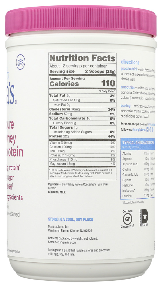 SIMPLY TERAS: Pure Whey Protein Plain Unsweetened, 12 oz SIMPLY TERAS: Pure Whey Protein Plain Unsweetened, 12 oz SIMPLY TERAS: Pure Whey Protein Plain Unsweetened, 12 oz SIMPLY TERAS: Pure Whey Protein Plain Unsweetened, 12 oz