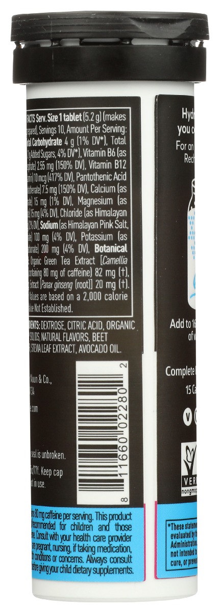 Jumpstart your day with Nuun Energy, a crafted blend designed to deliver a lift that lasts. Contains 80 mg of caffeine per serving.