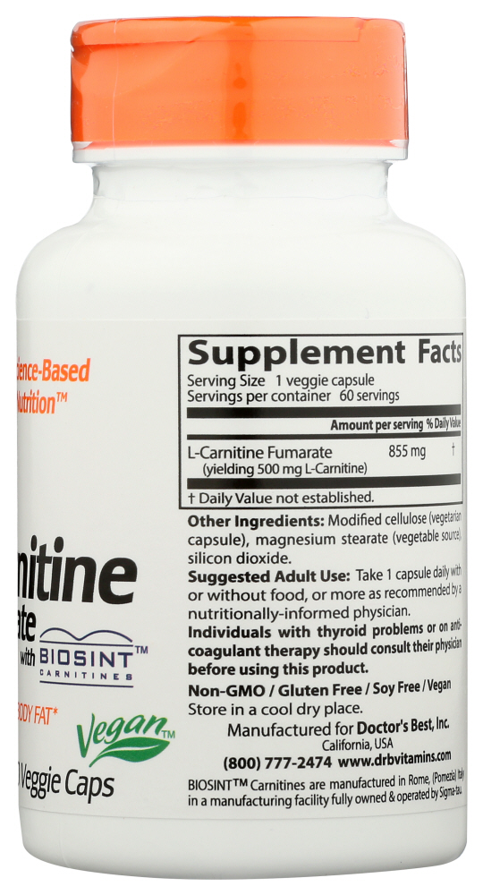 Home > DOCTORS BEST: L-Carnitine Fumarate 500M, 60 vc
