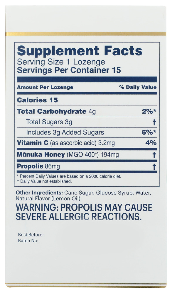 These delicious soothing lozenges combine the goodness of premium New Zealand Manuka honey with the fresh fruity taste of Blackcurrant and an extra boost of Vitamin C.