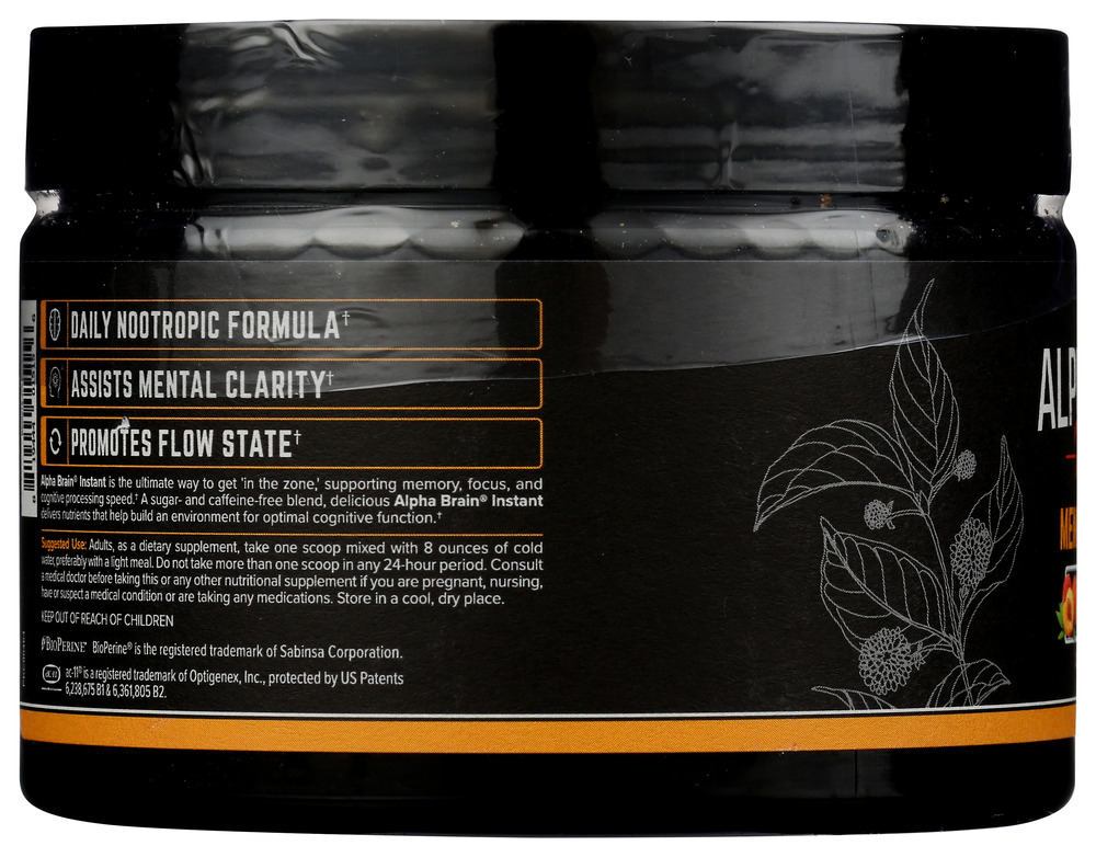 A sugar-and caffeine-free blend, delicious Alpha Brain® Instant delivers nutrients that help build an environment for optimal cognitive function. Gluten Free Caffeine Free Supports Memory & Focus Daily Cognitive Support Dietary Supplement Daily Nootropic Formula Assists Mental Clarity Promotes Flow State Alpha Brain® Instant is the ultimate way to get supporting memory, focus, and cognitive processing speed.