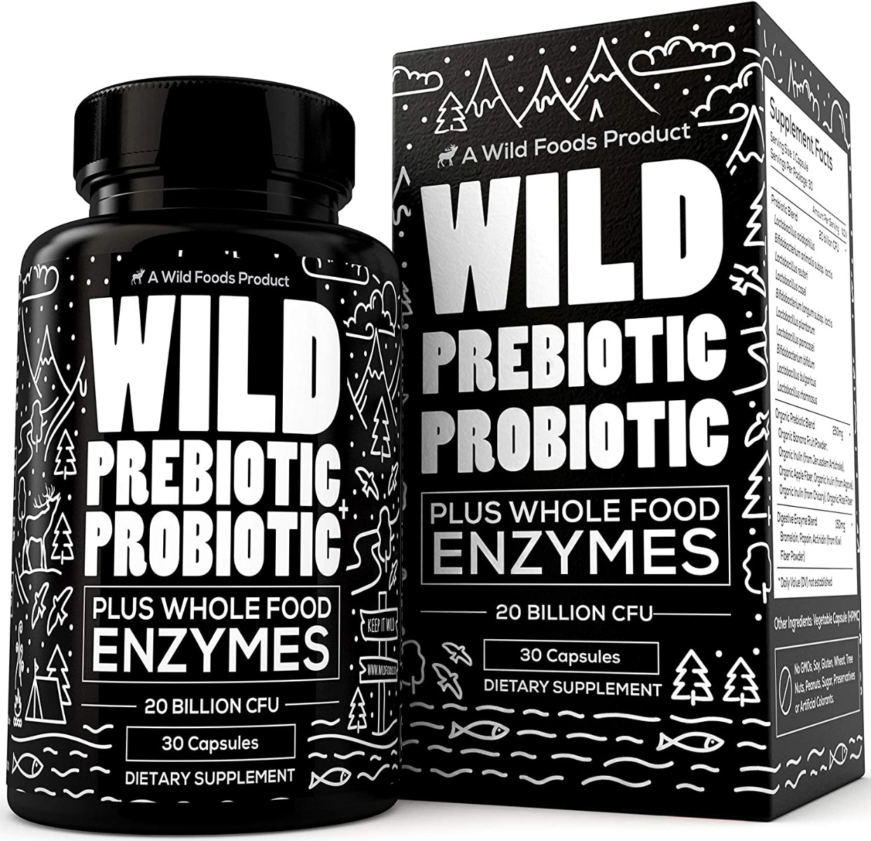 WILD PREBIOTICS, PROBIOTICS and DIGESTIVE ENZYMES: New from Wild Foods, this breakthrough supplement is for women and men looking to enjoy all of the benefits unique to premium strains of prebiotics, probiotics, and digestive enzymes. IMMUNE SUPPORT & DIGESTIVE HEALTH BENEFITS: Supports healthy digestion, immunity, and reduced cramping/bloating. Provides essential digestive enzymes that promote gut, skin, and hair health.