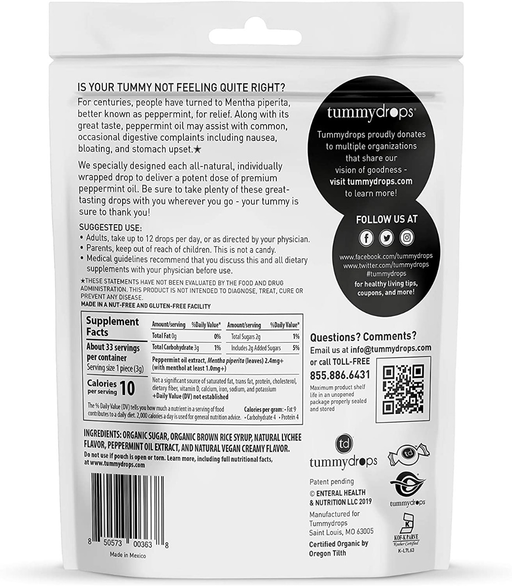 TUMMYDROPS: Sweet Lychee Peppemint Lozenges Bag, 33 pc