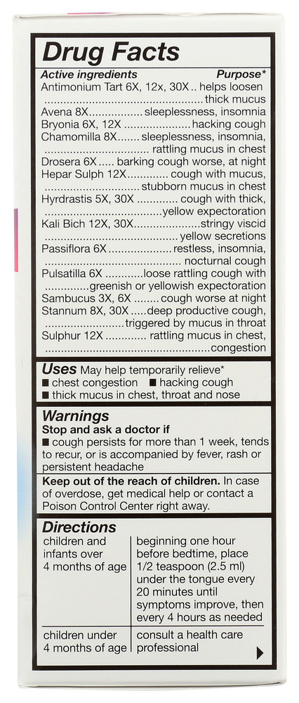 Our Childrens Cough & Mucus Nighttime is based on traditional homeopathic practice and theory. Treating children with homeopathy relies on natures own medicines to gently relieve symptoms and promote healing. A safe treatment for most minor ailments, homeopathic medicines use precise levels of key ingredients designed to work safely without side effects.