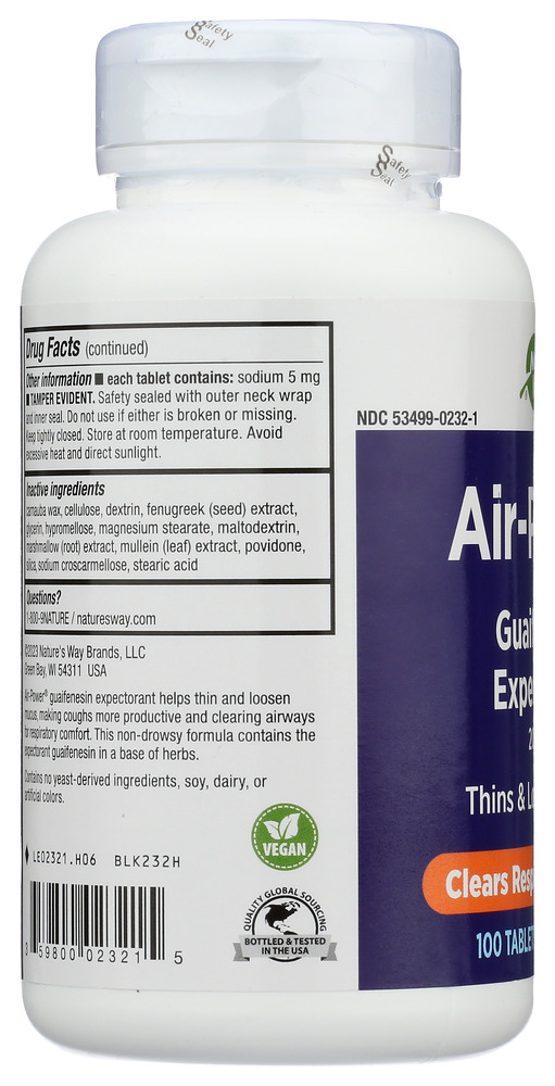This statement has not been evaluated by the Food and Drug Administration. This product is not intended to diagnose, treat, cure, or prevent any disease. Air-Power guaifenesin expectorant o Helps thin and loosen mucus o Clears respiratory airways Fast-acting Air-Power guaifenesin expectorant helps thin and loosen mucus, making coughs more productive and clearing airways for respiratory comfort.